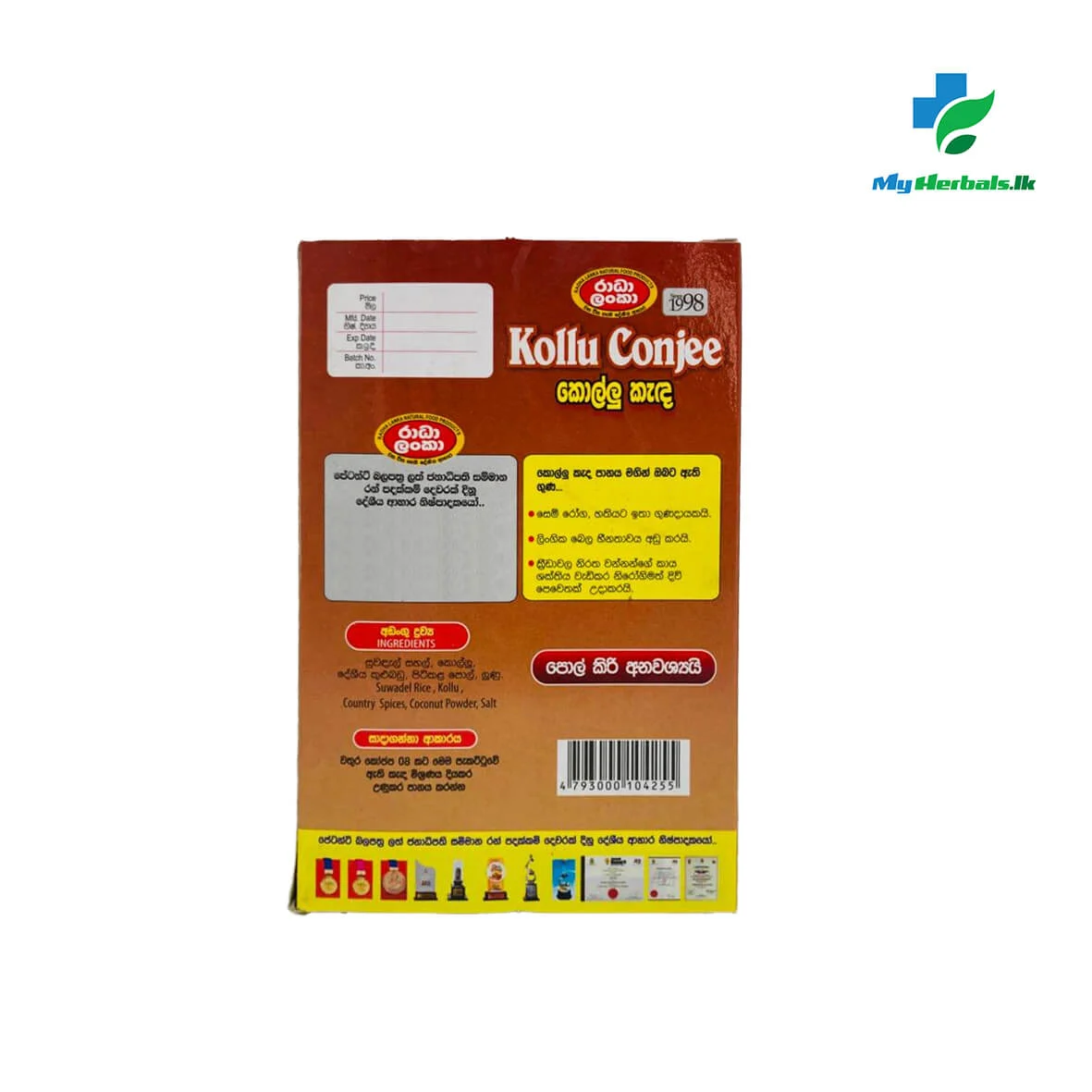 RADHA LANKA Kollu Conjee 100g is a nutrient-dense, ready-made herbal beverage crafted for individuals seeking natural weight management and systemic vitality. This 100% vegetarian formulation features Kollu (Horse Gram), a traditional legume highly regarded in Sri Lankan indigenous medicine for its metabolic benefits. Entirely free from artificial chemicals and additives, this conjee provides a pure, wholesome nutritional experience.